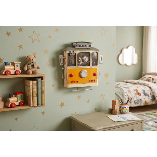 Nostaljinin En Şık Hali: El Yapımı Metal Tramvay Modeli & Fotoğraf Çerçevesi