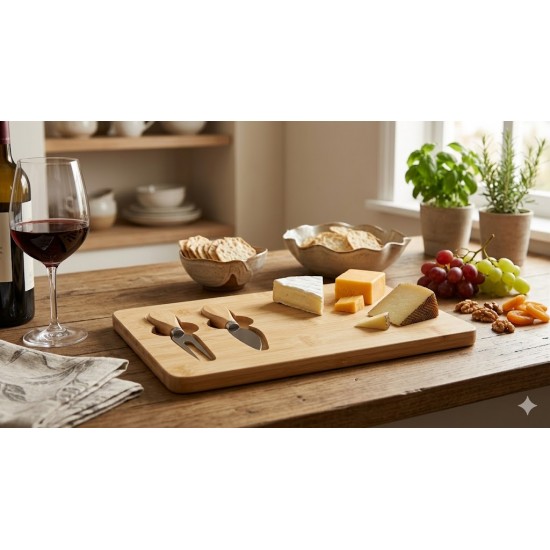 Estetik ve Lezzet Bir Arada: Bambu Peynir Sunum Tahtası & 2 Parça Servis Seti
